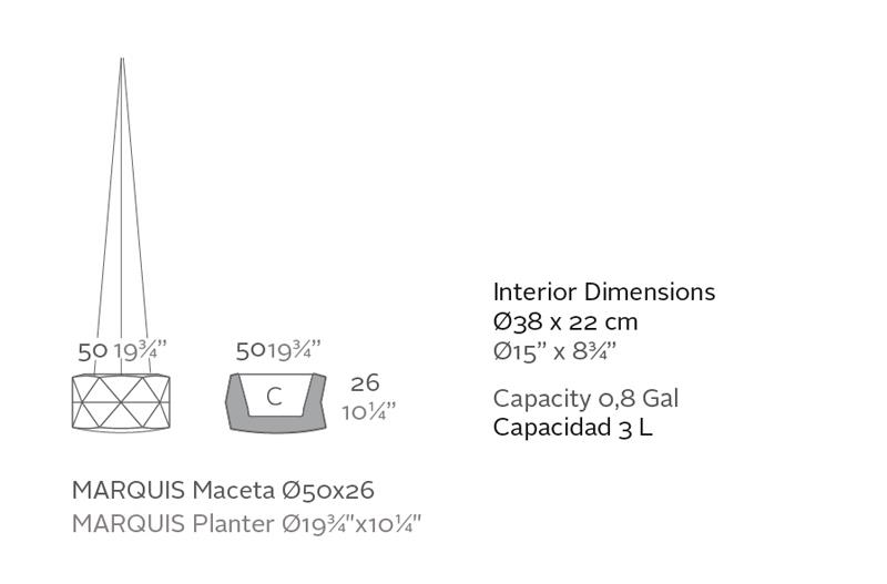Made of polyethylene resin by rotational moulding. 100% Recyclable. Item suitable for indoor and outdoor use. Available in different finishes.